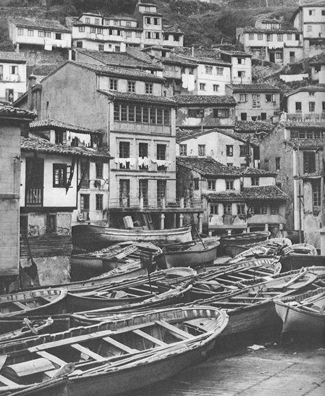 Resultado: porque interpreto esta imagen ("estas habas") como la representación de los frentes de algunas casas situadas detrás y por encima de una superficie de agua en la que flotan algunos botes ("son blancas");